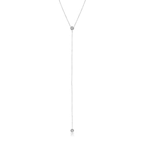 Fifth Ave Fair Sterling Silver Y Droplet Lariat Long Chain Necklace with Round Solitaire Bezel CZ Crystal Charm, Rhodium Plated 925 Silver, Adjustable Chain Length 16″ – 18″, with Jewelry Box