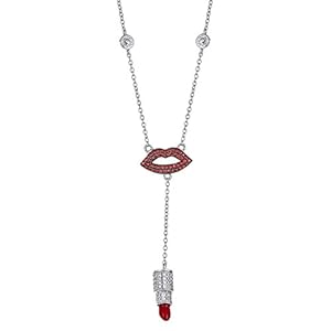Joy and Rachel Platinum Plated 925 Sterling Silver Round Red CZ Red Enamel Kiss Lip Stick Long Lariat Y Shaped Necklace