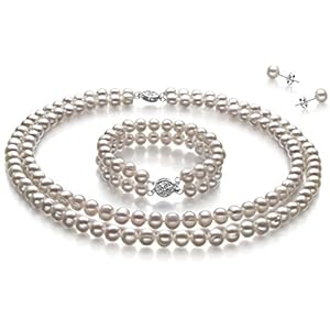Juliane White 6-7mm Double Strand A Quality Freshwater 925 Sterling Silver Cultured Pearl Set For Women