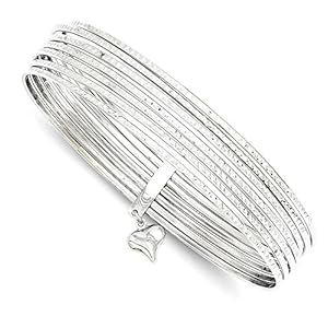 14k White Gold Dangle Heart Set Of 7 Slip On Bangle Bracelet Fine Jewelry For Women Gifts For Her