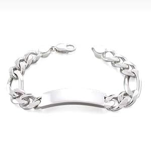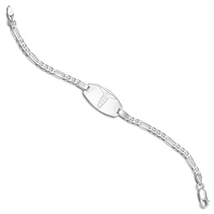 LGU Sterling Silver Medical Alert Identification Figaro Chain Engravable Bracelet