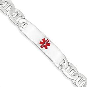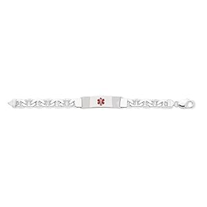 .925 Sterling Silver 10.00MM Red Enamel Medical Alert ID Anchor Link Bracelet 7.50 and 8.50 inches