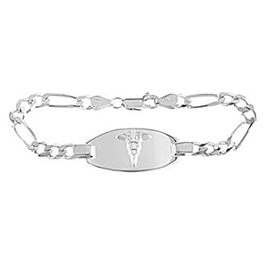 Medical ID Bracelet with Figaro Chain Sterling Silver