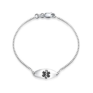 Blank Delicate Thin Oval Shape Medical Identification Engravable Medical Alert ID Bracelet For Women Sterling Silver
