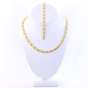 SPARKLE XOXO Hugs and Kisses Stainless Steel Stampato Necklace and Bracelet Set Gold Tone 20″ Length