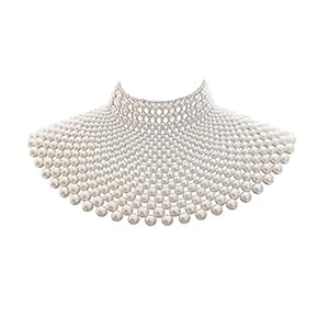 Fine Fashion Handmade Beaded Bib Egyptian Pearl Necklace Collar Women Dress Statement Choker Accessories (Cream)