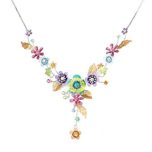 Glamorousky Colorful Flower and Tiny Butterfly Necklace with Multi-color Austrian Element Crystals