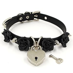 Handmade Clay Flowers Spikes Heart Lock Faux Leather Choker Collar