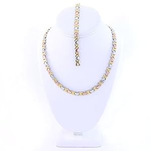 Womens 3 Tone Xoxo Hugs & Kisses Necklace and Bracelet Set 20″ XOXO Gold & Silver Hearts