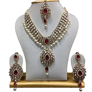 Prime Fast Delivery Elegant Indian Bollywood Red Stone White Pearls Women Jewellery Necklace Set