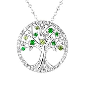 Fine Jewelry for Wife Tree of Life Necklace Green Emerald Peridot Sterling Silver May August Birthstone Jewelry for Women Birthday Gifts