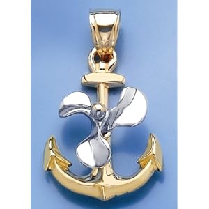 14k Two-tone Gold Nautical Charm Pendant, 3-D Anchor with Moveable White Propeller