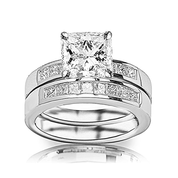 1.6 Carat t.w. GIA Certified Princess Cut 14K White Gold Classic Channel Set Princess Cut Diamond Engagement Ring and Wedding Band Set (I-J Color VS1-VS2 Clarity)