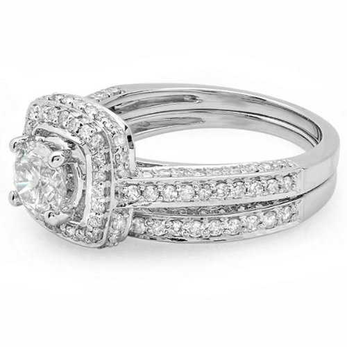 This lovely diamond engagement bridal ring set featuring 1.85 ct white diamonds in halo setting. All diamonds are sparkling and one hundred% natural. All our merchandise with FREE gift box and one hundred% Satisfaction guarantee. SKU # K2193