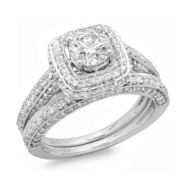 Dazzlingrock Collection 1.85 Carat (ctw) 14K Round Diamond Halo Style Bridal Engagement Ring Set Matching Band, White Gold