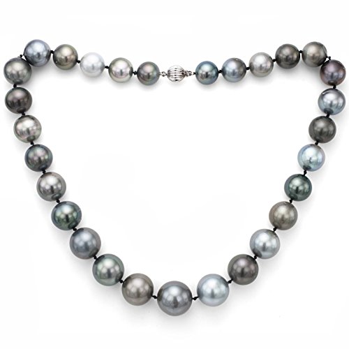 14K White Gold Multicolor South Sea Cultured Tahitian Pearl Necklace for Women 18 inch