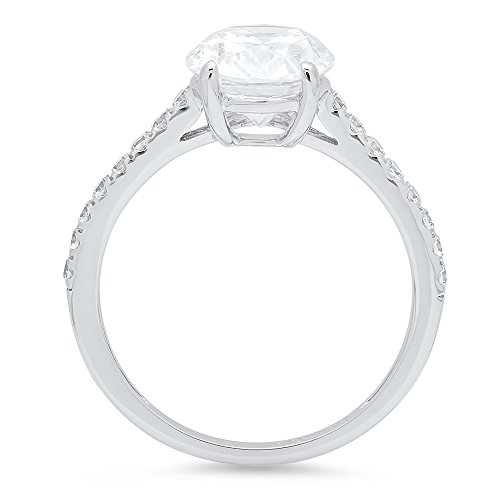 Clara Pucci 2.09 ct Brilliant Oval Cut Accent Solitaire Anniversary Engagement Wedding Bridal Promise Ring Solid 14k White Gold