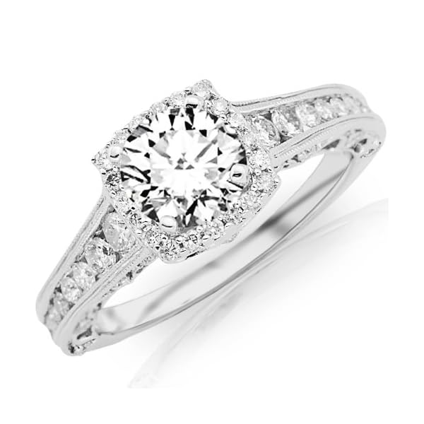2.25 Carat Designer Halo Channel Set Round Diamond Engagement Ring with Milgrain with a 1.5 Carat J-K SI2-I1 Center