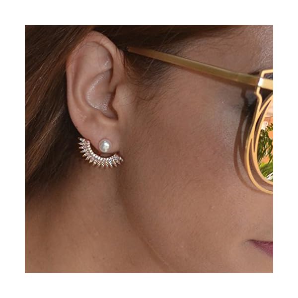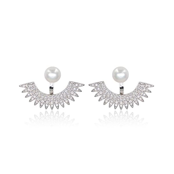 Quality – Eco-friendly brass plated with white gold, micropave with aaa+ sparkling cubic zirconia stones for additional sparkles, button shaped immitation pearl. Hypoallergenic and nickel free, protected for sensitive skins.