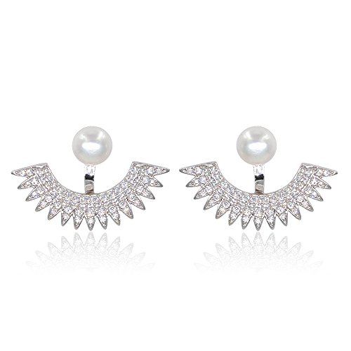 Quality – Eco-friendly brass plated with white gold, micropave with aaa+ sparkling cubic zirconia stones for additional sparkles, button shaped immitation pearl. Hypoallergenic and nickel free, safe for sensitive skins.