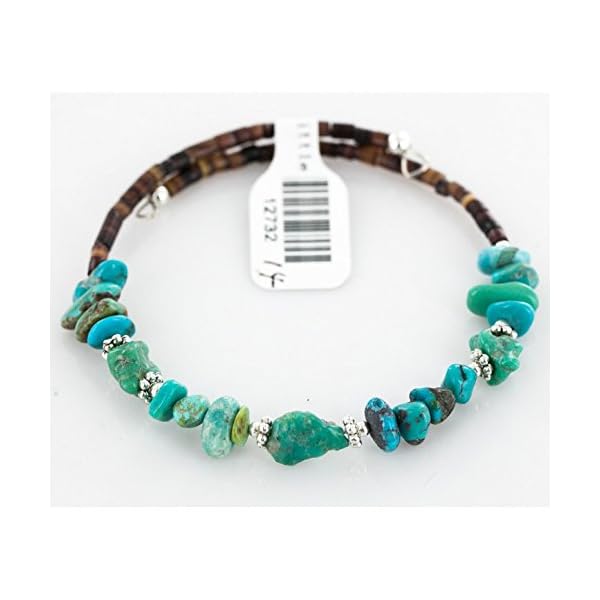 Tribal Affiliation: Navajo. Stone(s) Used: Turquoise and Heishi. Adjustable: Yes, Up to 2 Sizes. Diameter: 2 1/2 inch