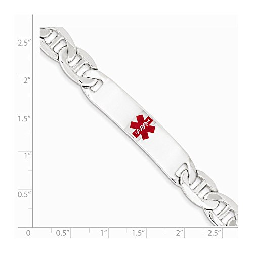 .925 Sterling Silver 10.00MM Red Enamel Medical Alert ID Anchor Link Bracelet 7.50 and 8.50 inches