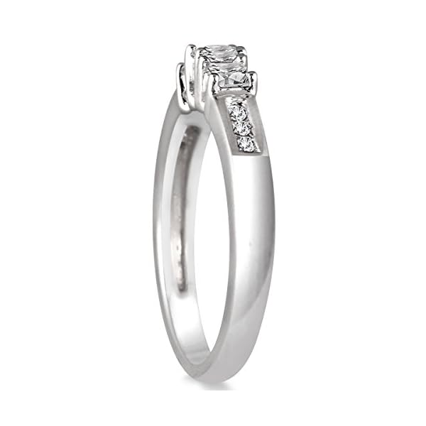 A gorgeous three stone diamond ring that includes a complete of 9 diamonds with a complete weight of one/2 carat. The hoop is crafted in 10K white gold. The hoop comes with an AGS (American Gem Society) Laboratory analysis record certifying diamond high quality.