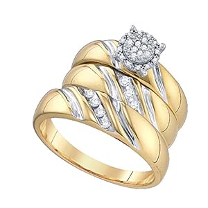 Sonia Jewels 10k Yellow Gold Round Diamond Trio His & Hers Matching Trio Wedding Bridal Engagement Ring Band Set (1/5 Cttw)