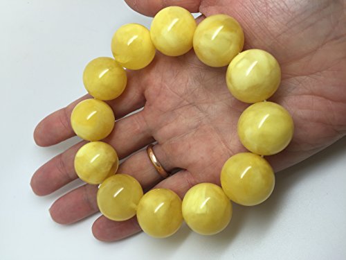 Baltic Amber Bracelet Yellow Round Ball Beads, 19-20 Millimetres Diameter, 12 Round Balls, 54g Weight.