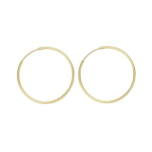 18K Gold Polished Continuous Endless Hoop Earrings, thick 2-mm tube 65-mm / 2.56-inch round (LARGE)
