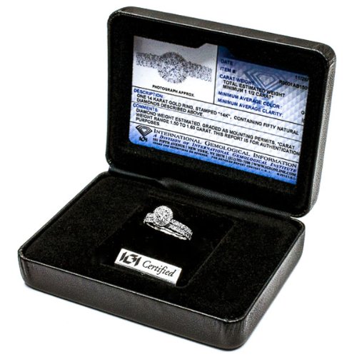 1.50 carats total weight diamond halo wedding ring set. Size 7. IGI USA certified. Color G-H. Clarity I1. Polish – superb to just right. Symmetry – superb to just right. 14K white gold. Estimated retail price $3999.00. Center diamond is 5/8 carats. These are one hundred% natural conflict free diamonds. Cut and polished at our diamond cutting and sharpening facilities, the use of state-of-the-art technology, to bring out the utmost luster, brilliance and fire within the diamonds. Custom set in NYC. Each and every item is quality checked by GIA certified gemologists and packed in our branded gift box before being shipped to you.