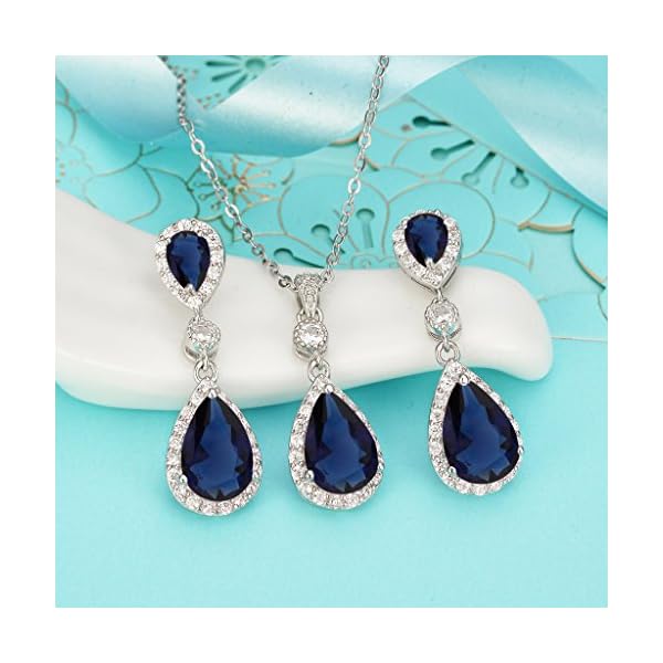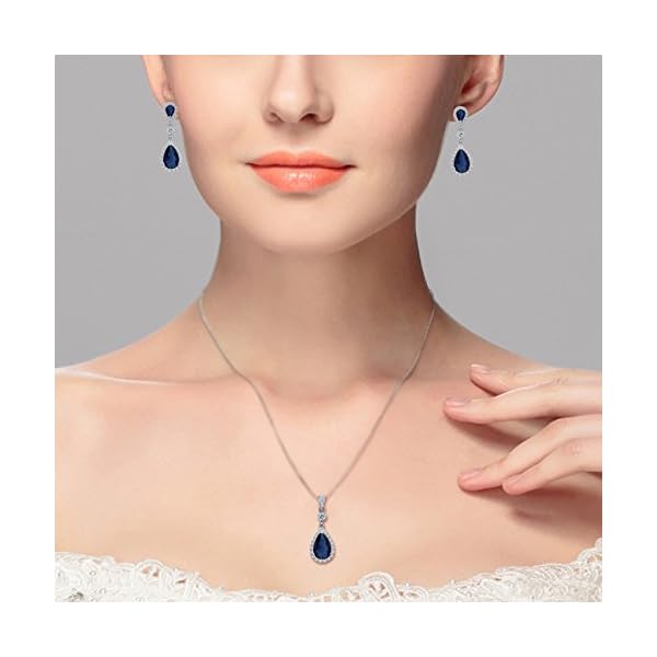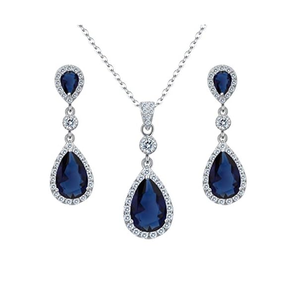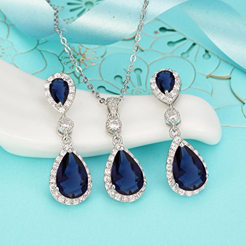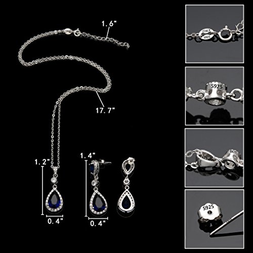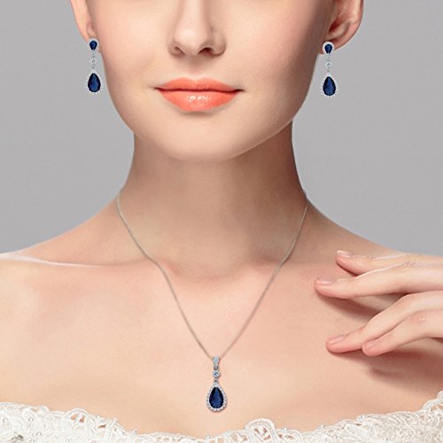 EleQueen 925 Sterling Silver Full Cubic Zirconia Teardrop Bridal Pendant Necklace Dangle Earrings Set, Valentine’s Day/Mother’s Day/Christmas Jewerly Gift for Girlfriend/Mom