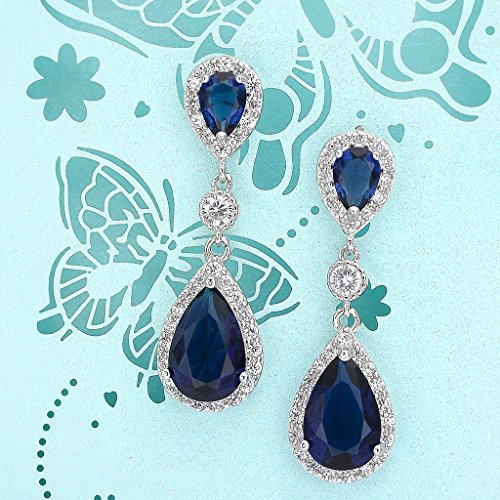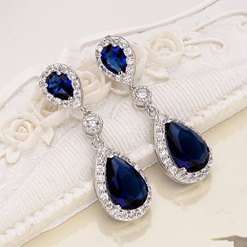 EleQueen 925 Sterling Silver Full Prong Cubic Zirconia Birthstone Teardrop Bridal Dangle Earrings for Women Girls, Valentine’s Day/Mother’s Day/Christmas Jewelry Gift for Girlfriennd/Mom