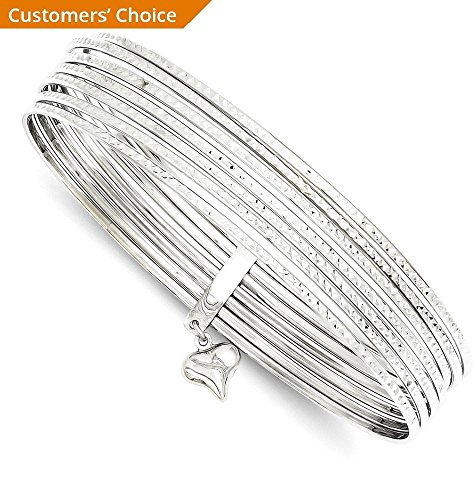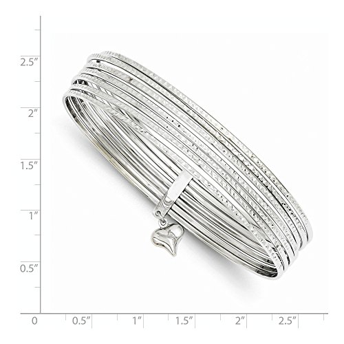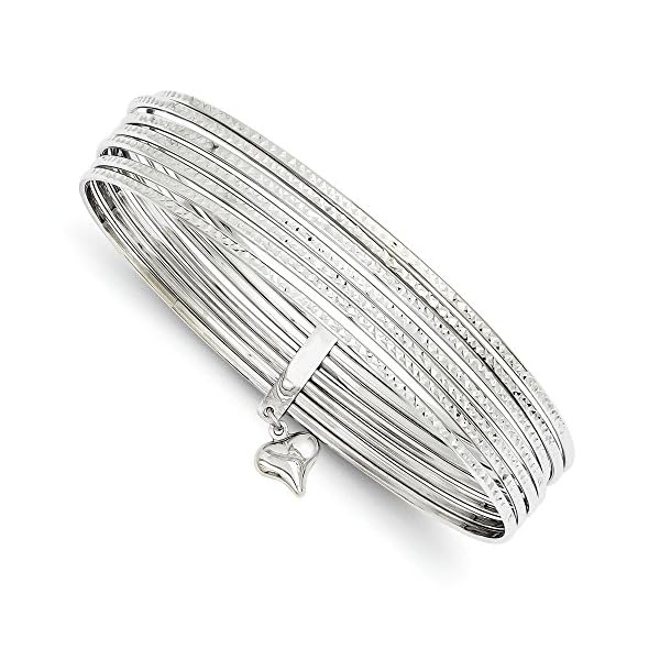 14k White Gold Dangle Heart Set Of 7 Slip On Bangle Bracelet Fine Jewelry For Women Gifts For Her