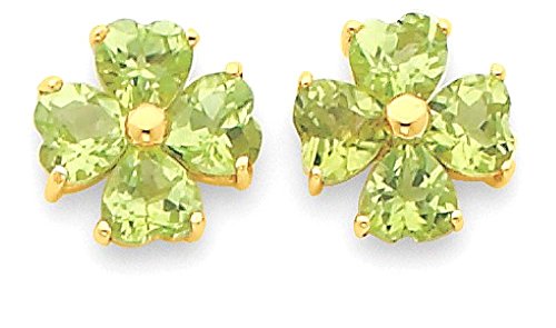 ICECARATS DESIGNER JEWELRY 14K YELLOW GOLD HEART SHAPED GREEN PERIDOT FLOWER POST STUD BALL BUTTON STUD EARRINGS