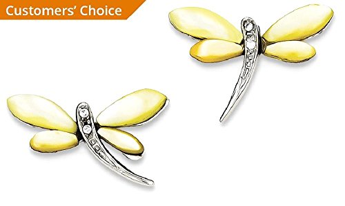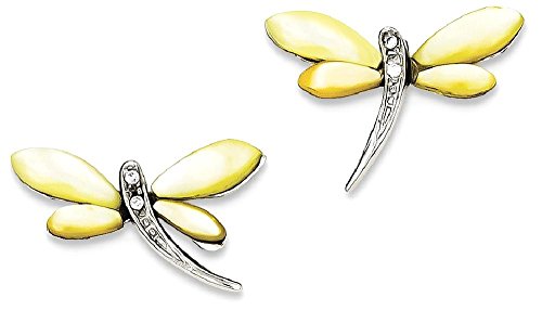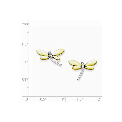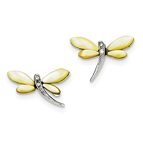 ICECARATS DESIGNER JEWELRY 925 STERLING SILVER CUBIC ZIRCONIA CZ YELLOW MOTHER OF PEARL DRAGONFLY POST STUD BALL BUTTON STUD EARRINGS