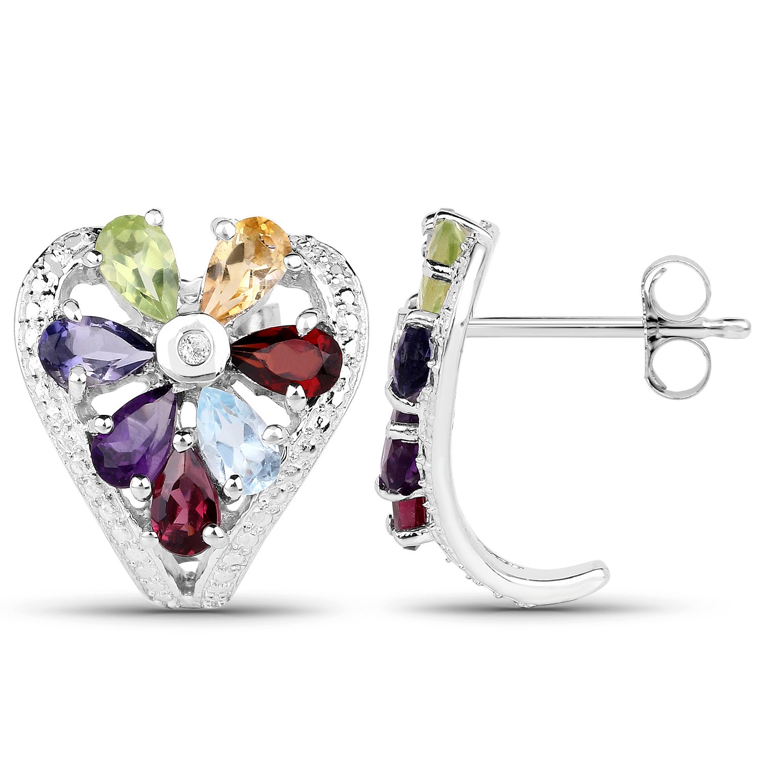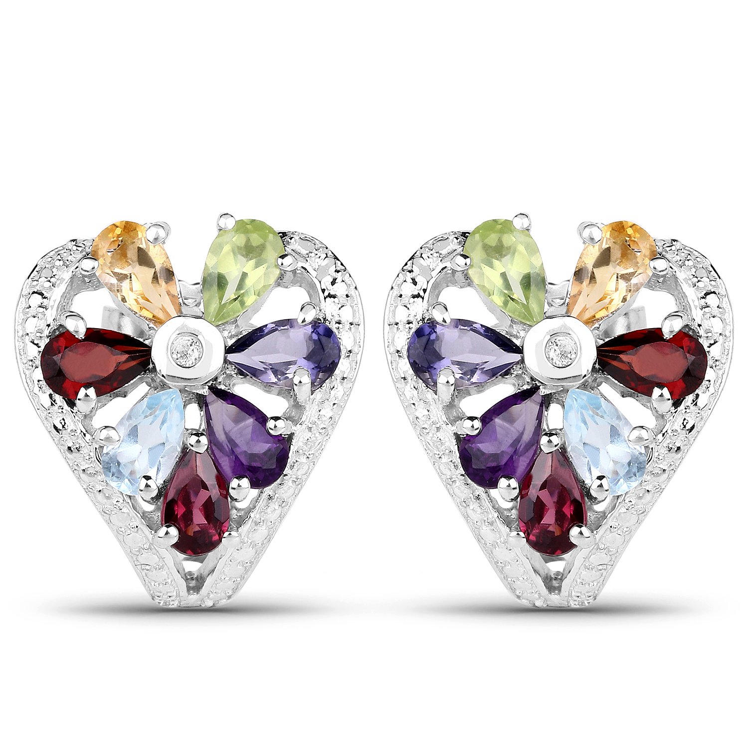 Item: Earrings | Gemstone: Multigemstone | Metal: .925 Sterling Silver | Finish: Rhodium Plated