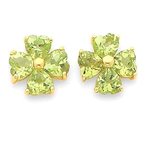 14k Yellow Gold Heart Shaped Peridot Flower Earrings Ball Button Birthstone August Fine Jewelry For Women Gifts For Her