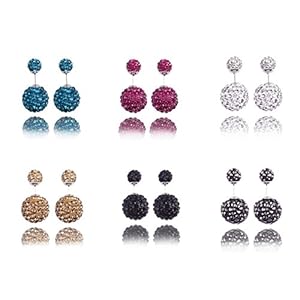Fashion Jewelry Set of 6 Pairs stainless steel post pin Double Sided Bling Crystal Balls Studs Tribal Earrings 151231150259 (Nickel Free)