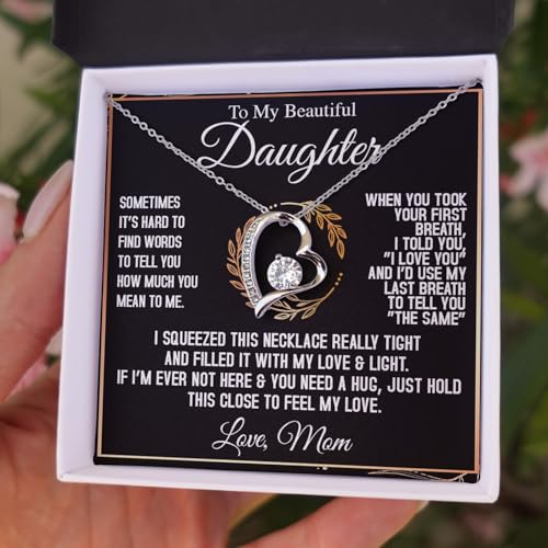 Larvincy To My Daughter Necklace From Mom Or Dad With Heartfelt Message & Elegant Box – Valentines, Mother’s Day Gifts, Jewelry Gift For Daughter From Mother Or Father On Birthday, Graduation & More