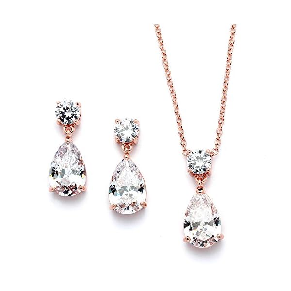 Mariell 14K Rose Gold Plated CZ Teardrop Bridal Necklace and Earring Set for Weddings, Bridesmaids & Prom
