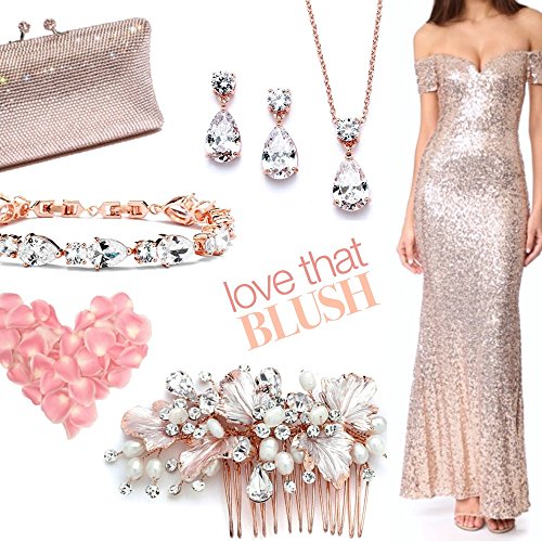 Make your grand entrance unforgettable in this best-selling 14 Karat Rose Gold Plated Cubic Zirconia jewelry set by Mariell. The dazzling Blush Gold pendant rests on a glistening adjustable rope chain measuring 15 1/2″ to 17″ long. and stunning 3/4″ h dangle earrings. Necklace length can fit standard or petitie size neck. Get able to light up the room in our brilliant teardrop necklace and earrings set ablaze with the finest quality AAAAA grade Cubic Zirconia…at a price so that they can have you celebrating! The CZ gems are precision cut into the timeless wonderful thing about classic round-cut and pear-shaped teardrops meticulously prong-set in Genuine 14K Rose Gold plating. This gleaming matching jewelry set will add the easiest finish to bridal or wedding gowns, bridesmaids dresses or any special occasion frock. We love the “dress up or dress-down” versatility of this fabulous jewelry set. After your special occasion frocks are neatly tucked back in the closet, enjoy this blush gold set to jazz up your business attire or add a splash of bling to your favorite sweater and jeans. Wear the necklace or the earrings alone when you wish to have the subtle sophistication of just a single piece of jewelry with that look of real diamonds. We promise you can love this glamorous rose gold remark set or your money-back. Treat yourself or someone you love to a couple seriously gorgeous sparkle at an impossible to resist price. This best-selling beauty makes a gift any woman will treasure ceaselessly! Enjoy Mariell’s 100% Risk Free Purchase and Lifetime Guarantee.