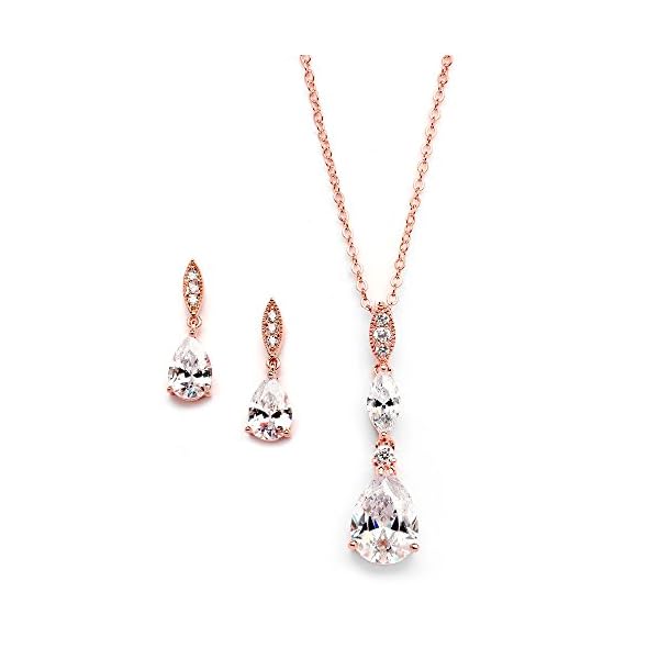 Gorgeous Rose Gold Wedding Necklace and Earrings Set with Gleaming Pear-shaped Cubic Zirconia Teardrops is A Best-Seller for Brides, Bridesmaids, Prom, Homecoming and Mother of the Bride