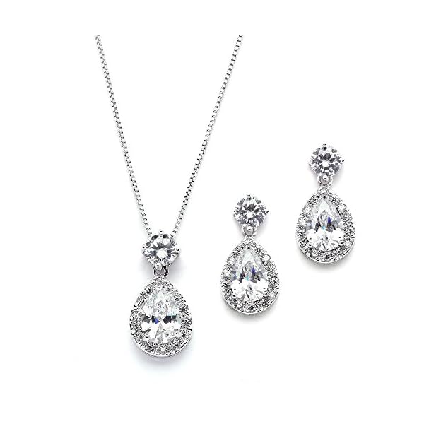 Mariell Pear Shaped CZ Teardrop Necklace and Earrings Set – Wedding Jewelry for Brides & Bridesmaids