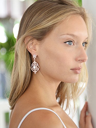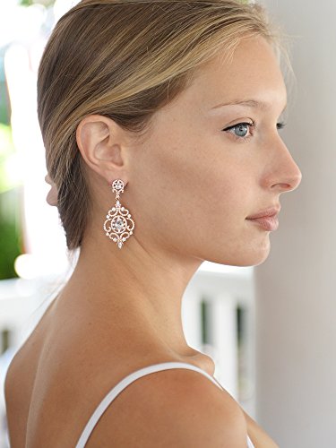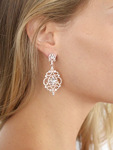 Mariell’s top-selling bridal or big day chandelier earrings sparkle with AAAAA quality Cubic Zirconia gems in a fresh vintage design infused with a hint of up to date styling. These romantic Victorian beauties will make a stunning Observation with any wedding gown, pageant attire or evening dress adding a serious dose of sophisticated blush gold bling. Our jewel-encrusted CZ earrings with distinctive oval-cut stones are a should-have addition for your jewelry wardrobe. They measure 2 1/16″ h x 7/8″ w with posts and comfort-back disks. Genuine 14 Karat Rose Gold plating. We promise you’ll be able to fall in love with these designer dazzlers or your money-back. Treat yourself or somebody you love to a couple seriously gorgeous sparkle. As at all times, Revel in Mariell’s Risk-Free purchase and Liftetime Guarantee.