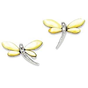 925 Sterling Silver Rhod Pltd Cubic Zirconia Cz Yellow Mother Of Pearl Dragonfly Earrings Ball Button Animal Insect Fine Jewelry For Women Gifts For Her