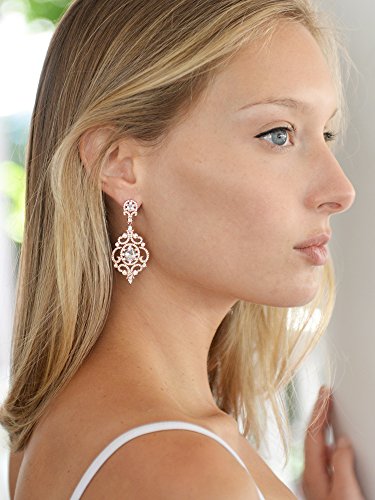 Mariell Victorian Scrolls 14k Rose Gold plated Cubic Zirconia Wedding or Evening Chandelier Earrings