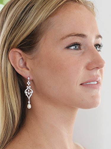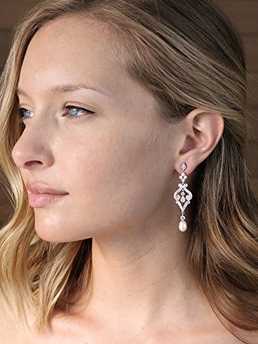 Mariell’s best selling vintage wedding earrings feature Genuine Freshwater Pearl drops and glistening Cubic Zirconia in this glamorous Art Deco bridal jewelry. Our estate quality earrings create the very best touch of elegance for brides, wedding parties, mother of the bride, holidays, formals, bridesmaids or any special occasion. With their classic heirloom styling and timeless silhouette, Mariell’s gorgeous pearl bridal earrings are a will have to-have for each and every woman’s jewelry collection. One look at these antique reproduction silver earrings and you can see for yourself that the Mariell brand is dedicated to creating affordable observation jewelry that evokes exquisite diamond and pearl stunners. These ever-popular bridal earrings are meticulously crafted the usage of Genuine Freshwater pearls and top Quality AAAAA Cubic Zirconia plated in Genuine Platinum for the look of priceless antique-reproduction Art Deco jewelry. We promise you can adore our top-selling pearl earrings or your Money-Back. Treat yourself or someone you love to a few seriously gorgeous Gatsby-inspired sparkle at a fabulous low price. As all the time, enjoy Mariell’s exclusive 100% Risk-Free Purchase and Lifetime Guarantee.