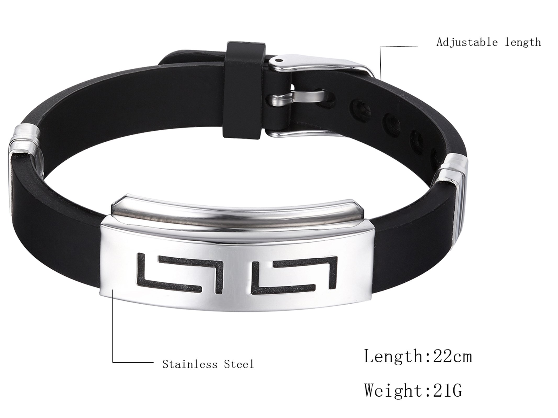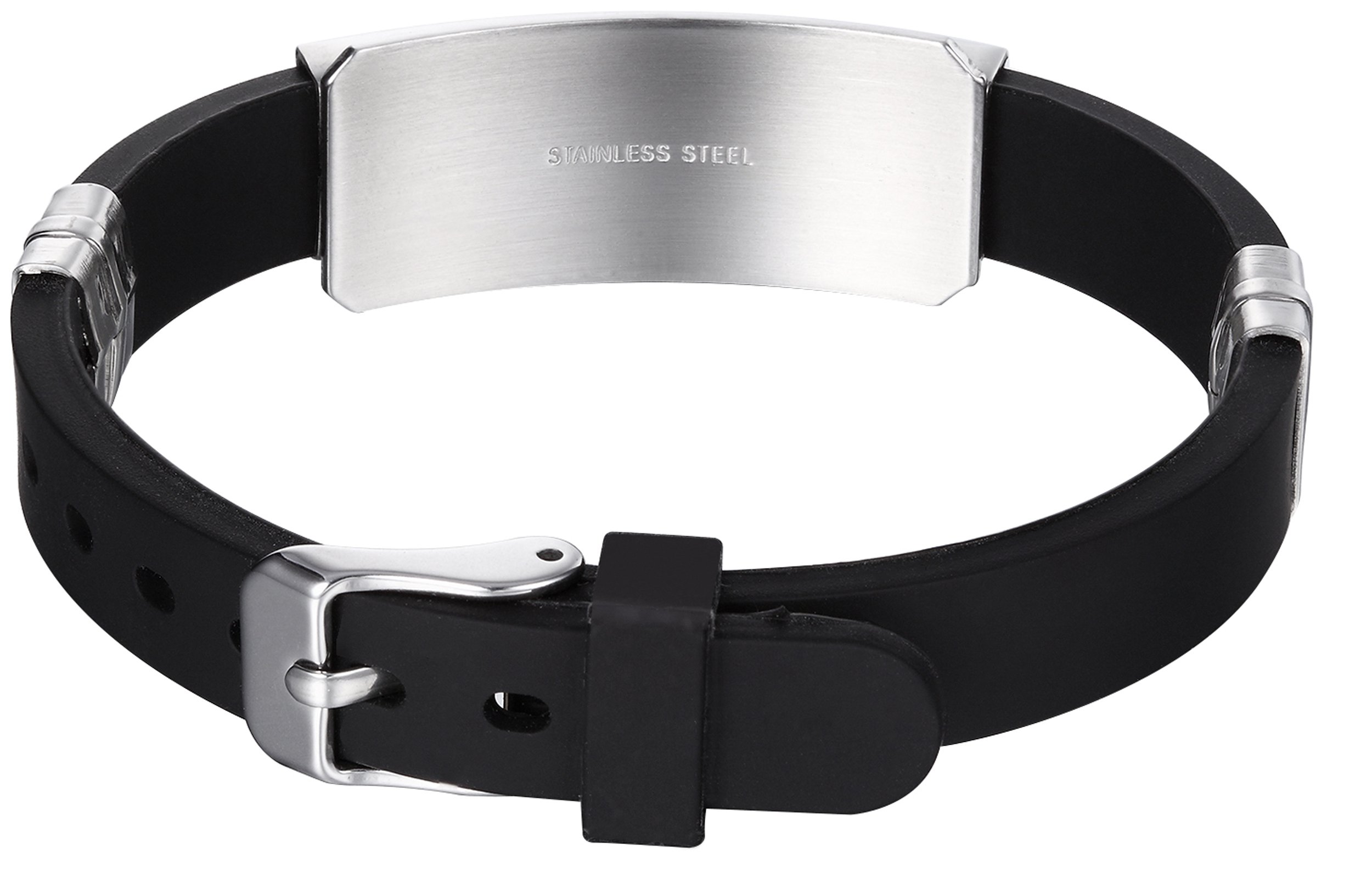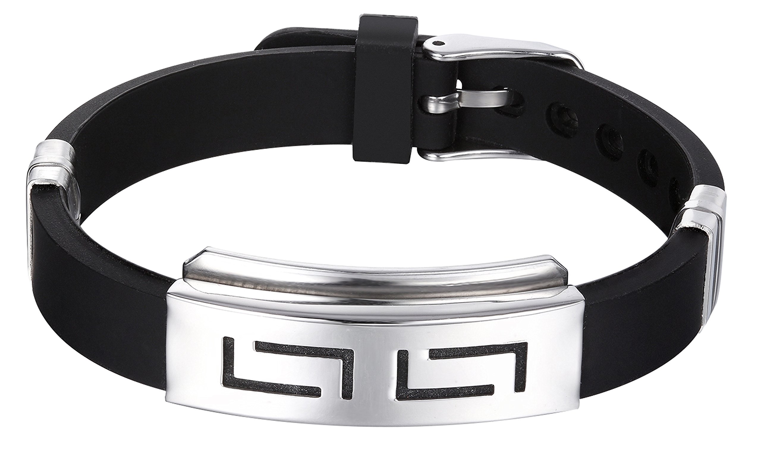 MoAndy Mens’s Rubber Bangle Bracelet Jewelry Titanium Steel Rubber Black 22CM Length Adjustable