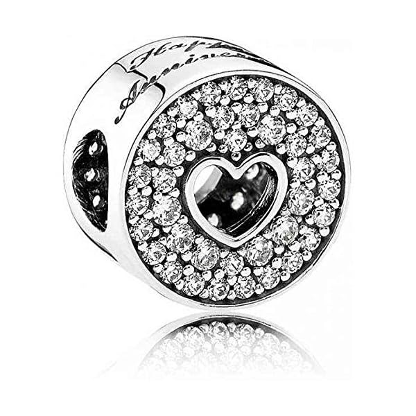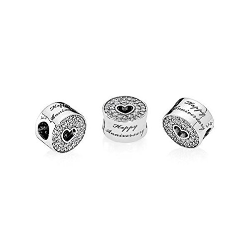 PANDORA Jewelry Pave and Heart Anniversary Cubic Zirconia Charm in Sterling Silver